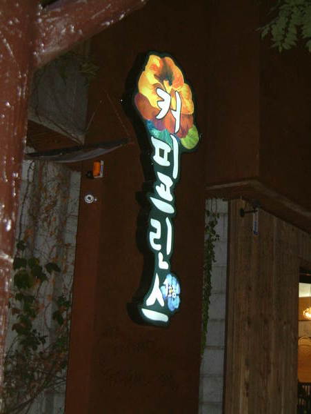果然,逛了大約半個小時後,Sandy又打了我的手機,這回,我們順利的碰到面,下午四點多,她請我吃了飯(根本分不清是午飯還是晚飯,哈~),然後,我們決定到弘益大學的「咖啡王子1號店」去看看。
